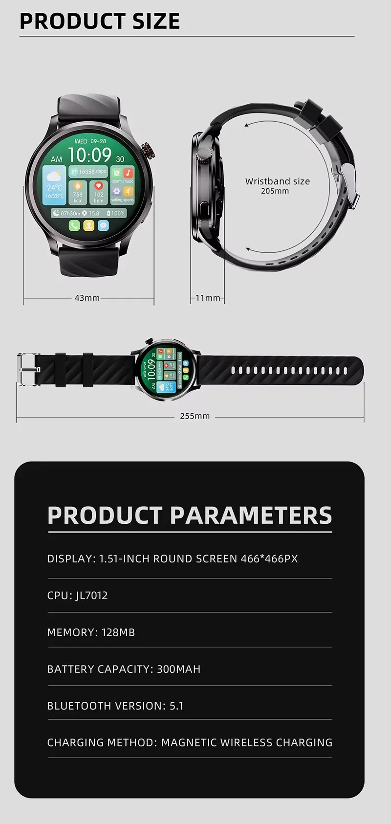 New smartwatch SK51 Bluetooth call watch 1.5-inch high-definition touch screen Outdoor sports mode Fitness and health monitoring